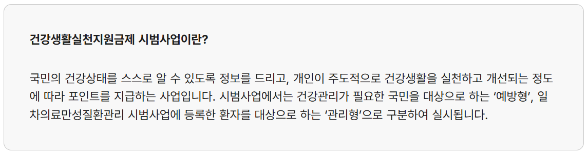- 관리형 참여자는 포인트를 병원·진료비 결제에도 사용 가능 (건강실천카드 발급받기)